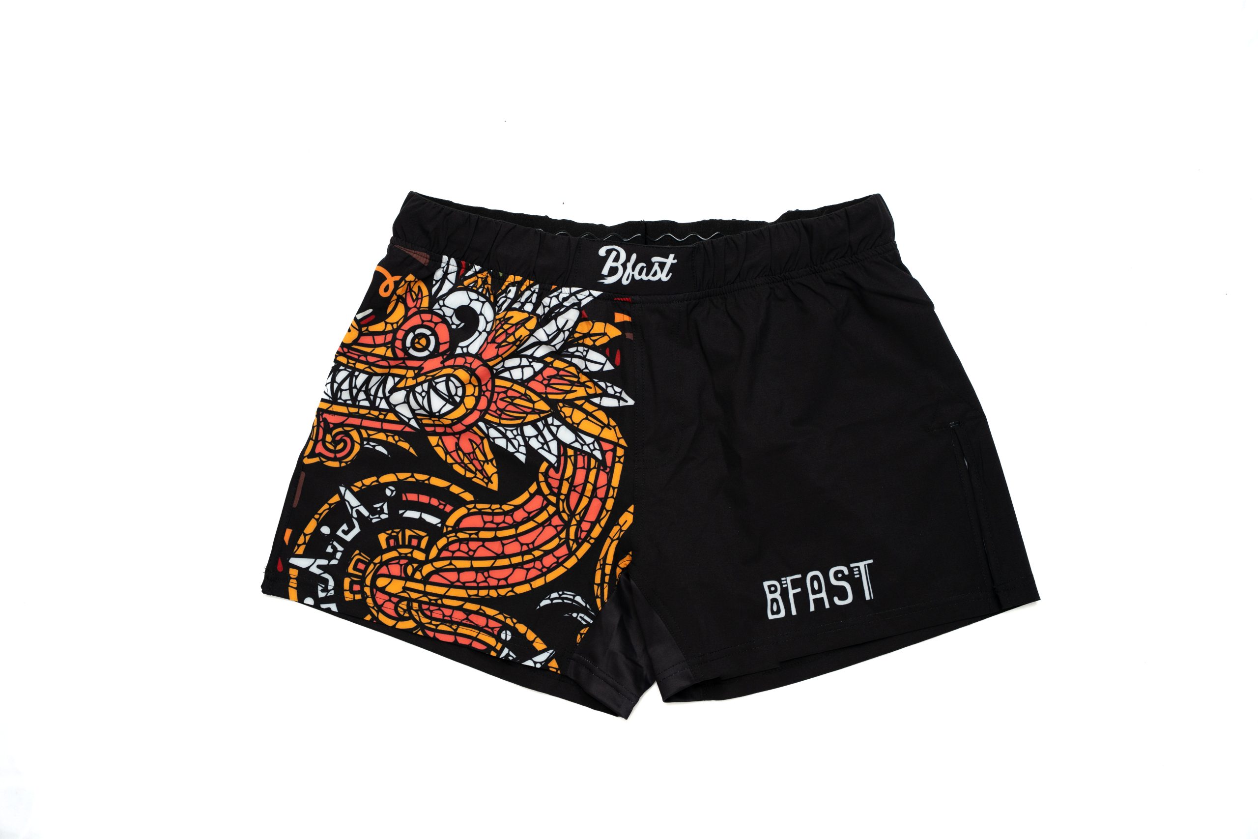 These limited-edition BFAST Aztec shorts pay tribute to the fighting spirit of Latin American warriors — fierce, agile, and fearless. Featuring a bold mosaic-style dragon design and tribal art detailing, they blend cultural power with technical performance. Made with moisture-wicking, tear-resistant fabric and reinforced side slits for maximum mobility, they’re made to dominate in MMA, Muay Thai, Jiu-Jitsu, or whatever arena you step into.